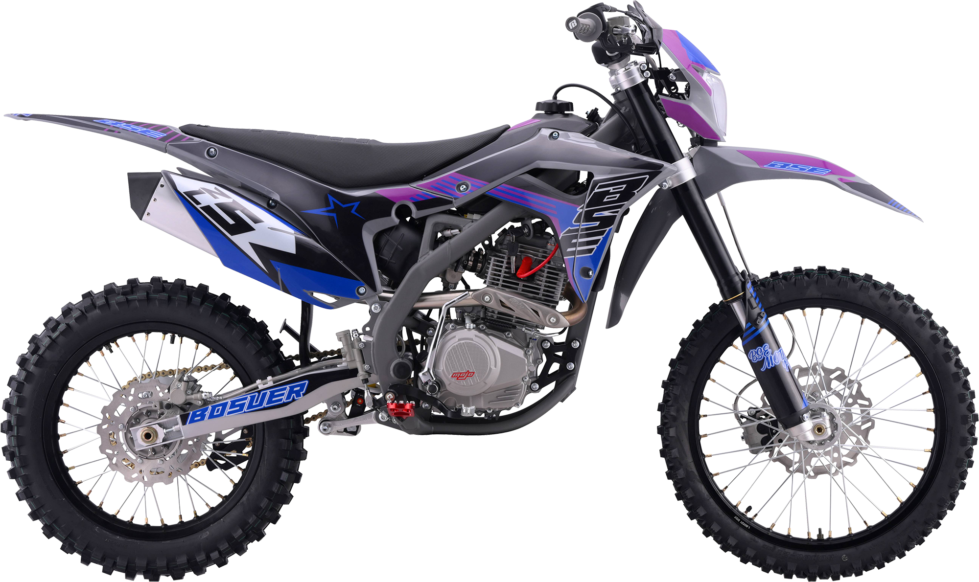 За основу мы взяли успешный полноразмерный Z5 и упростили комплектацию, чтобы сделать максимально привлекательный прайс, оставив главные компоненты — надежный 250-кубовый мотор Zonsen и усиленную стальную раму Bosuer. В итоге получили полноразмерный, функциональный и мощный эндуро мотоцикл. Идеально сбалансированный, устойчивый и готовый прощать ошибки при езде.