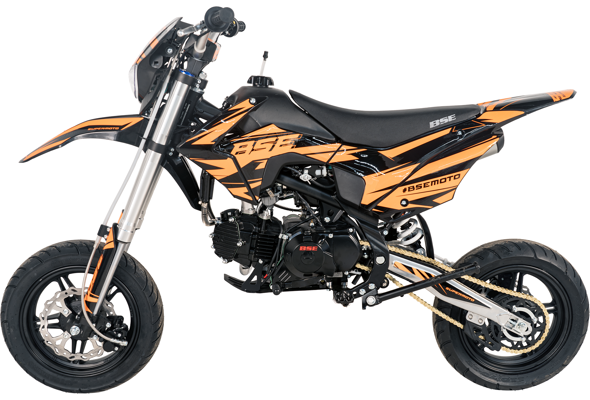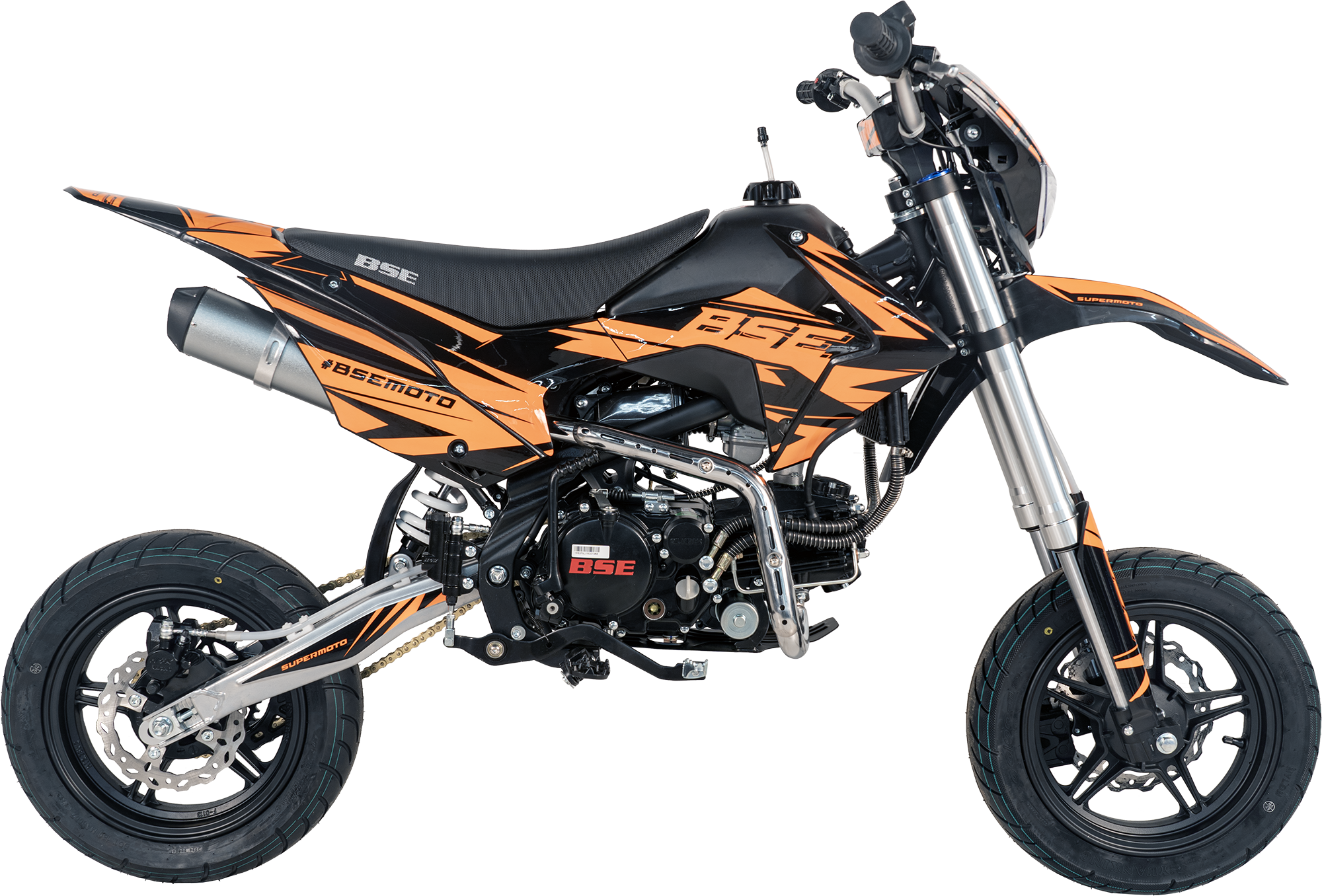 BSE PH 150 12/12 Supermoto — это высокомощная и маневренная модель, предназначенная для активных гонщиков. Оснащен 150-кубовым 4-тактным мотором YX 1P60 FMJ, который развивает до 15 л.с. при 9500 об/мин. Модель отличается воздушно-масляным охлаждением, что способствует эффективному отведению тепла, и карбюратором Jingke PZ30, который гарантирует хорошую реакцию на газ. Это Обеспечивает отличную динамику и тягу на треке. Подойдет как начинающим, так и опытным райдерам.